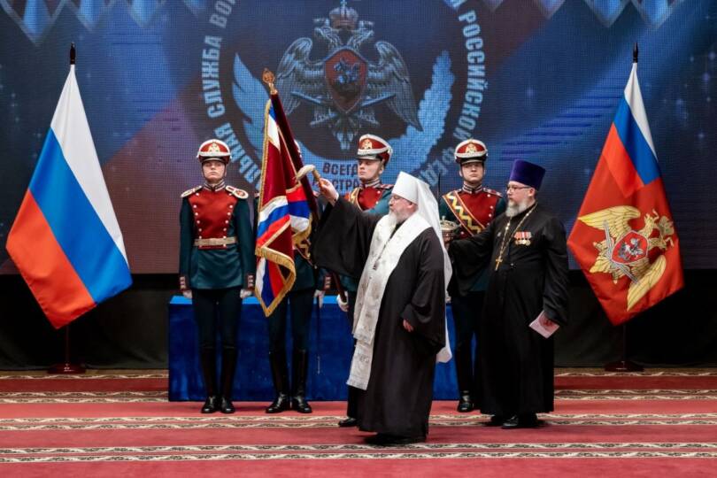 Чин освящения штандарта совершил митрополит Ставропольский и Невинномысский Кирилл. По окончании богослужебной церемонии архипастырь обратился к присутствующим с приветственным словом. Глава Синодального отдела лично поздравил главнокомандующего войсками национальной гвардии В.В. Золотова с предстоящим юбилеем образования службы, пожелав ему неоскудевающей помощи Божией в несении ответственных трудов на благо Отечества, а всему личному составу войск национальной гвардии — крепости душевных и телесных сил и скорейшей победы.