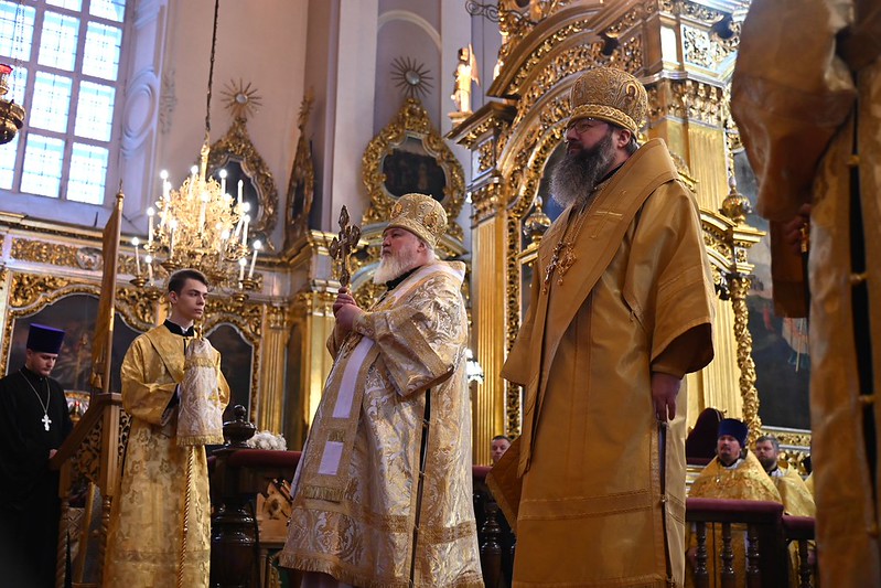 25 ноября, в Свято-Успенском кафедральном соборе г. Смоленска состоялось вечернее богослужение, которое возглавили митрополит Смоленский и Дорогобужский Исидор и председатель Синодального отдела по взаимодействию с Вооруженными Силами и правоохранительными органами митрополит Ставропольский и Невинномысский Кирилл. Архипастыри совершили вечерню с акафистом перед чудотворным Смоленским образом Божией Матери «Одигитрия».