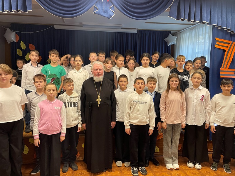 7 ноября 2025 года в МБОУ СОШ № 12 города Невинномысска настоятель храма преподобного Серафима Саровского протоиерей Игорь Тымчак провел с учащимися пятых классов беседу на тему уважительного отношения к ближнему.